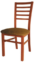 Krzesło z drewna bukowego. Noga tylna profilowana. W dolnej czę¶ci oparcie tapicerowane, w górnej pięć szczebli. Siedzisko tapicerowane. Krzesło o nowoczesnym stylu charakteryzuj±ce się wysok± ergonomi±, idealne zarówno do domu jak i restauracji, kawiarni itp.
