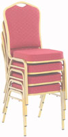 Krzesło na stelarzu metalowym. Oparcie profilowane, tapicerowane w dwóch pionowych rzędach, u szczytu z praktycznym uchwytem. Siedzisko tapicerowane. Krzesło można sztaplować oszczędzająac tym samym miejsce w magazynie. Krzesło idealne do sal koferencyjnych, bankietowych, weselnych..