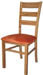 Krzesło z drewna bukowego. Noga tylna profilowana. Oparcie wykonane z trzech szczebli. Siedzisko tapicerowane. Krzesło o nowoczesnym stylu charakteryzuj±ce się wysok± ergonomi±, idealne zarówno do domu jak i restauracji, kawiarni itp.