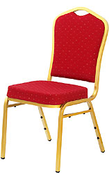 Krzesło na stelarzu metalowym. Oparcie profilowane, tapicerowane w dwóch pionowych rzędach, u szczytu z praktycznym uchwytem. Siedzisko tapicerowane. Krzesło można sztaplować oszczędzająac tym samym miejsce w magazynie. Krzesło idealne do sal koferencyjnych, bankietowych, weselnych..