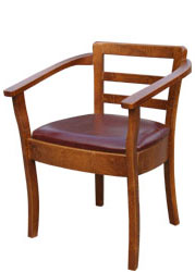 Fotelik z drewna bukowego. Oparcie drewniane profilowane, siedzisko tapicerowane. Tylne oparcie fotela zapewnia wysoki komfort przy siedzeniu. Nogi przednie lekko profilowane. Fotelik idealnie pasuj±cy do restauracji, pubu. Nowoczesny styl i wysoka ergonomia.