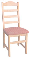 Krzesło z drewna sosnowego. Nogi tylne profilowane, oparcie tylne ze szczebli drewnianych. Siedzisko tapicerowane lub drewniane do wyboru. Krzesło wygodne, ergonomiczne, doskonale nadające się do kuchni, pubu czy restauracji.